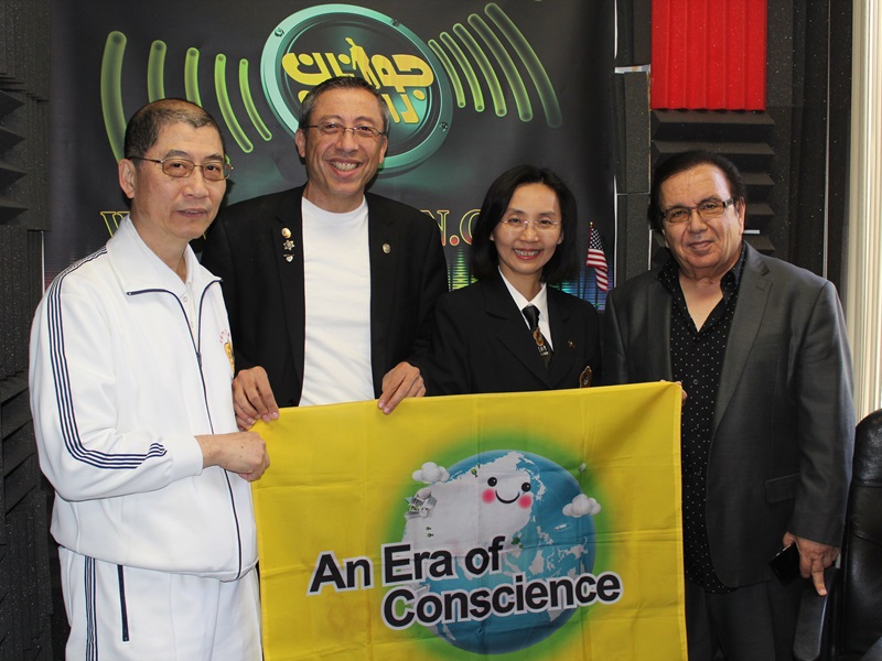 Hayavi Moradi, business owner of Hayavi Live International (Second from the Left) and Mehdi Zokaei, Editor in Chief of Javanan International Weekly Magazine (First from the Right) support An Era of Conscience with volunteers in Canoga Park, California.