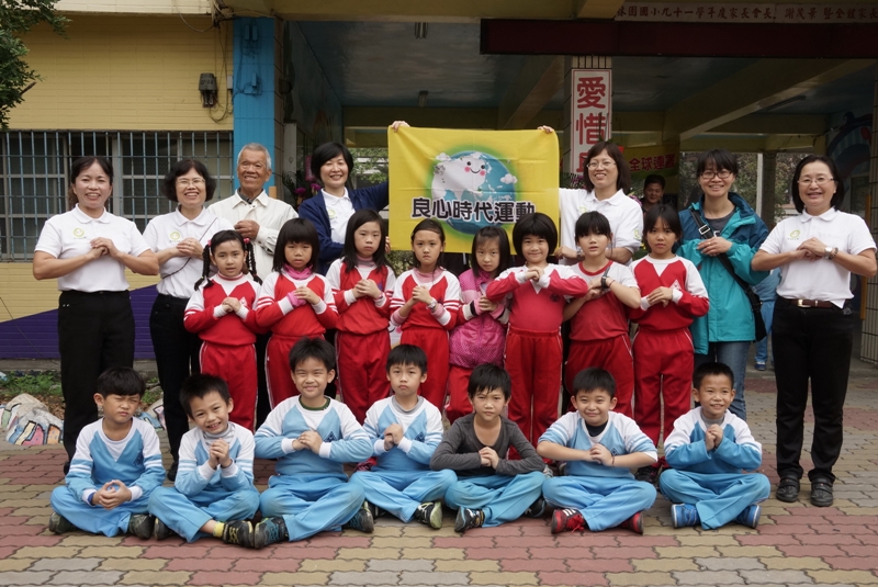 成立114週年的林園國小以主動,關懷,健康,快樂為願景,創造和諧的校園環境,校慶當天校長與全體師生共同參與響應良心時代運動連署.