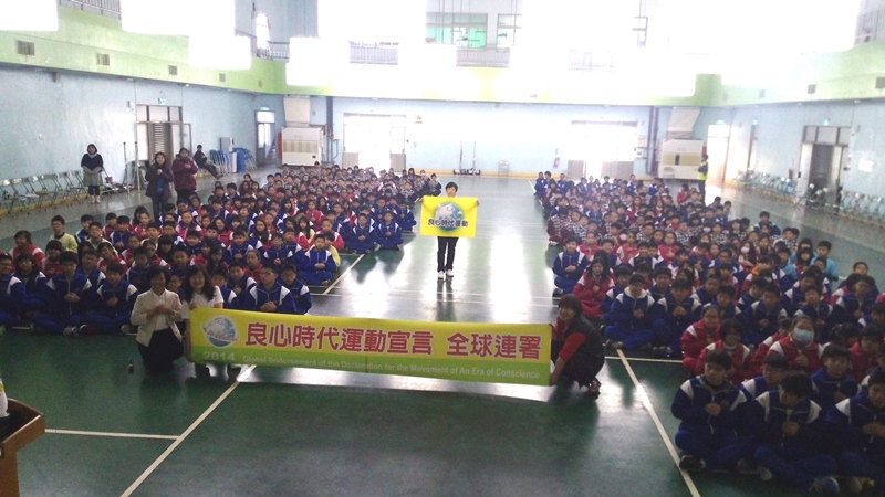 彰化永靖國中一年級師生共同響應良心時代運動的連署,願意成為一個有良心的好學生。