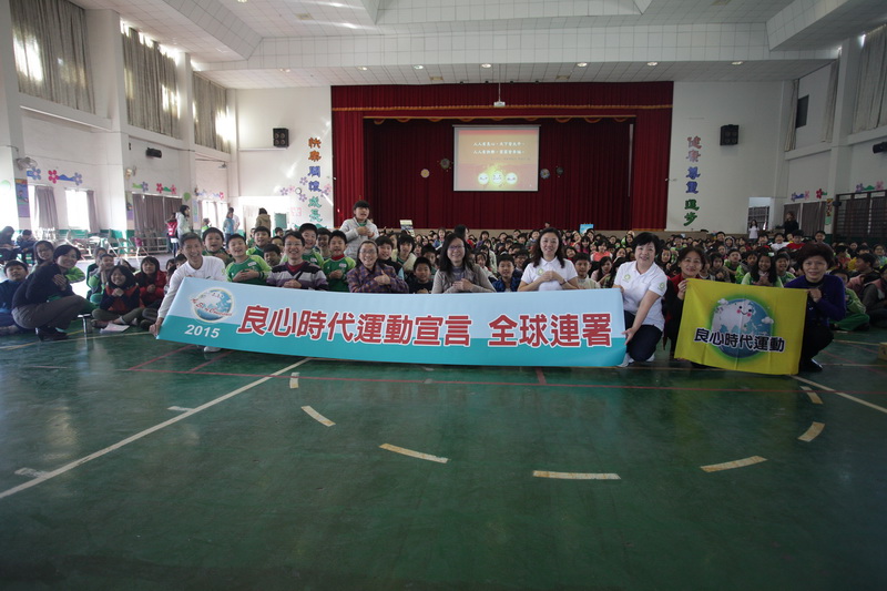 校長帶領全校師生一起響應良心時代運動,希望能提升孩子品德教育,落實在生活中.
