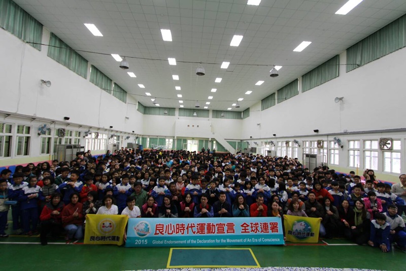 臺中市塗城國小共同推動良心時代運動,校長張永志認為雖然塗城國小得到教育部跟台中市的品格認證學校,一向對孩子的好品格有信心,但是還有持續進步的空間。同時世界上有許多亂象,讓我們這個世界更祥和,讓我們立足的地方大家互相的尊重,大家都具備好品格,這是我們迫切要去完成的事。