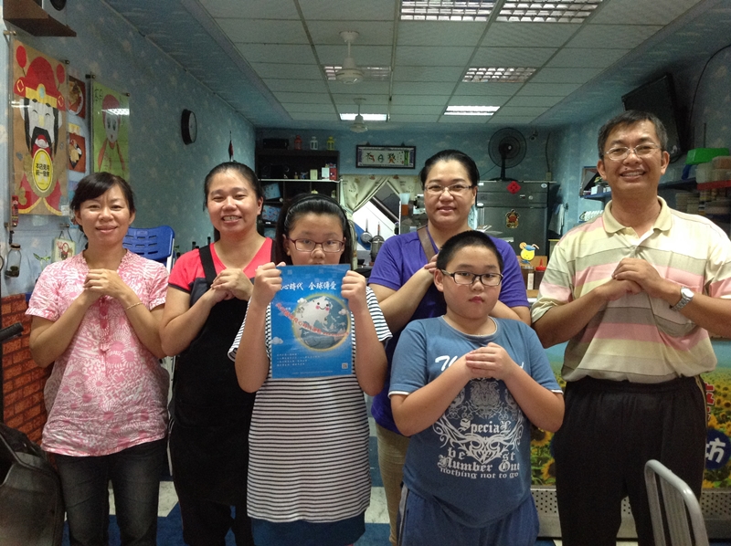 吳植喜女士(前排右三)利用聚餐時,邀同好一起響應良心時代。深信唯有人人有良心,社會.國家.天下才能太平。