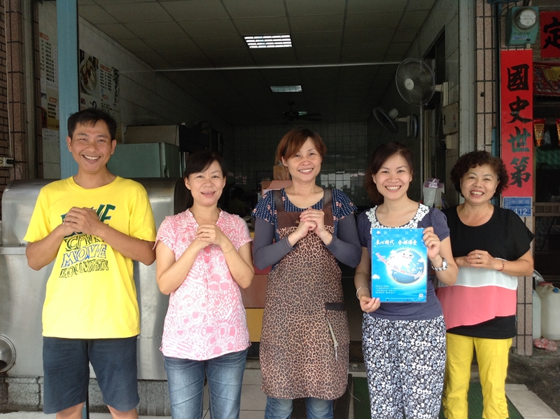 屏東市向日葵早餐店老闆娘陳素梅(左二)說:我們用的東西是挑選過的,自己試用過的,才給客人使用,請大家一起參與良心時代運動。
