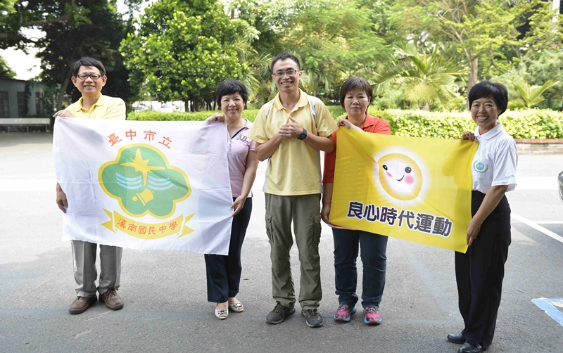 溪南國中學務主任,張騰衍主任(右3),覺得良心時代運動很好,除了連結網站讓師生了解外,也希望從品德教育著手,落實於教學中。