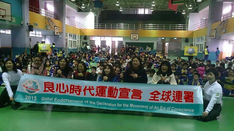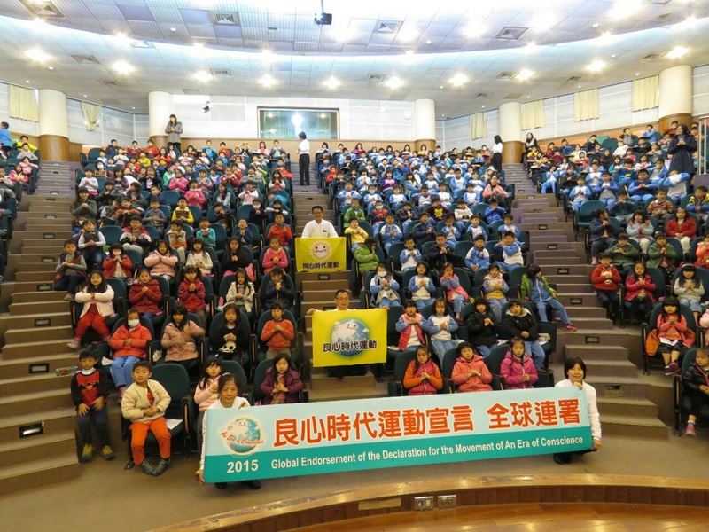 信義國小共同推動良心時代運動,校長楊琇玲認為人的善心善念足以擴及到其他的人事物,有錢出錢有力出力,如果沒有錢又沒有力,就把自己做好,奉獻自己開發自己的良知,就可以對社會做出貢獻。