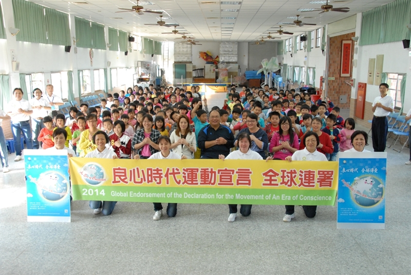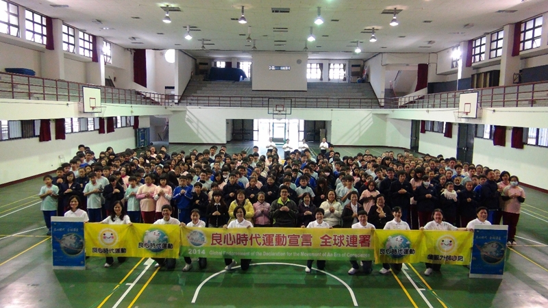 黃榮臻校長及學務主任黃淑文帶領育賢國中師生一起響應良心時代運動,教育工作人員的良知是一切良心事業的源頭,老師們是秉著自己的良心在教育我們的下一代。學校把學生當做上天賦予的資產,好好的教育他們讓他們將來能發揮潛能及發展,除了學業的教育之外,希望也重視學生的品德發展,希望將良心時代運動的精神落實在生活中讓學生從小就學習做個有良心的人。