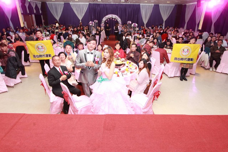 新人林玟政與陳欣怡婚宴帶領全場親友貴賓一起響應良心時代運動,呼籲人人有良心,家家皆幸福.快樂.平安