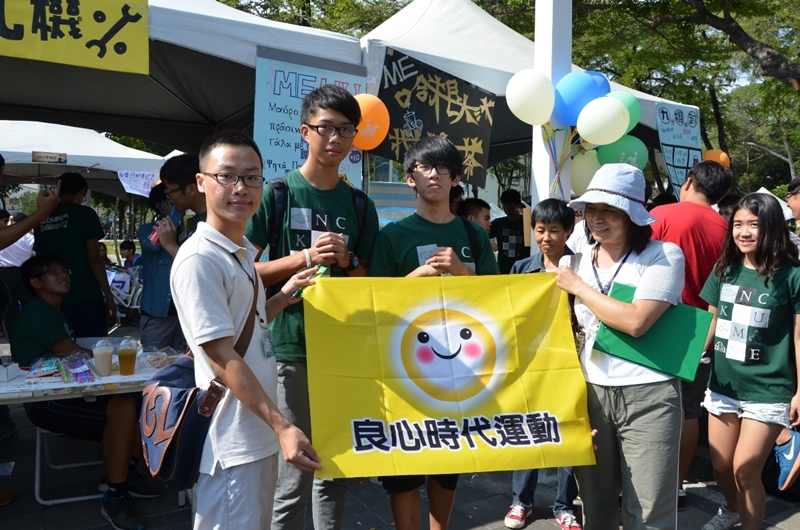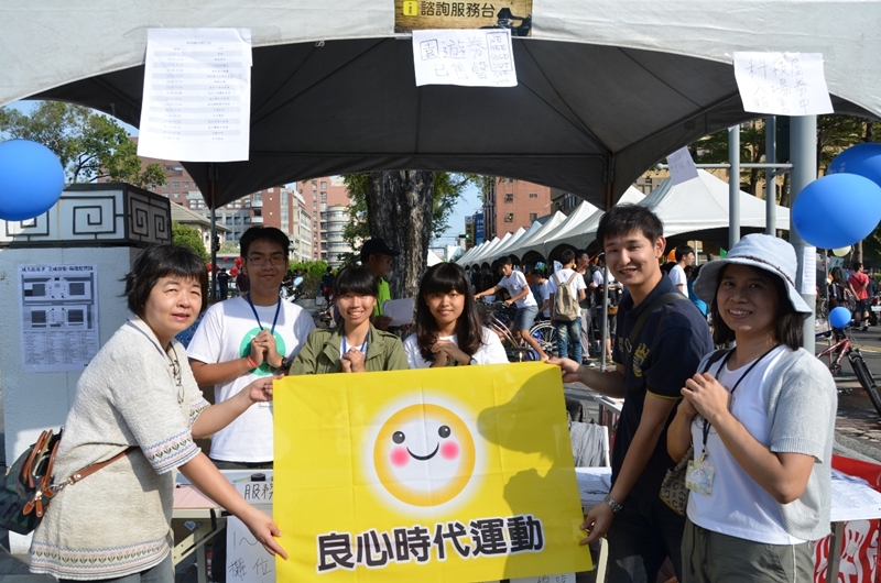國立成功大學於2014年11月9日在台南市大學路上舉辦83周年校慶園遊會,各系所及社團學生都出來擺設攤位共襄盛舉,現場氣氛十分熱烈;有鑒於社會食安風波、社會動盪, 諮詢服務台攤位的同學們在歡慶校慶同時也紛紛響應良心時代運動!