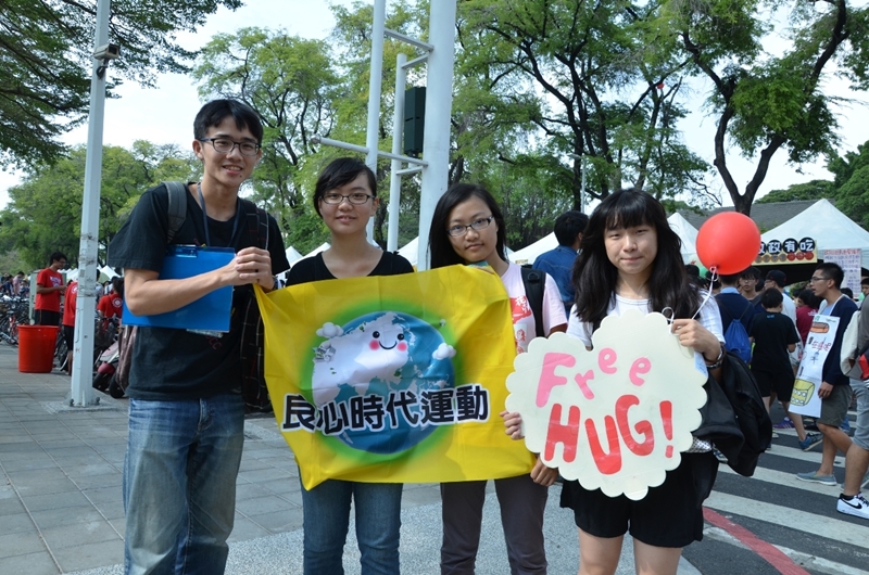 國立成功大學於2014年11月9日在台南市大學路上舉辦83周年校慶園遊會,各系所及社團學生都出來擺設攤位共襄盛舉,現場氣氛十分熱烈;有鑒於社會食安風波、社會動盪, FEEE HUG攤位的同學們在歡慶校慶同時也紛紛響應良心時代運動!