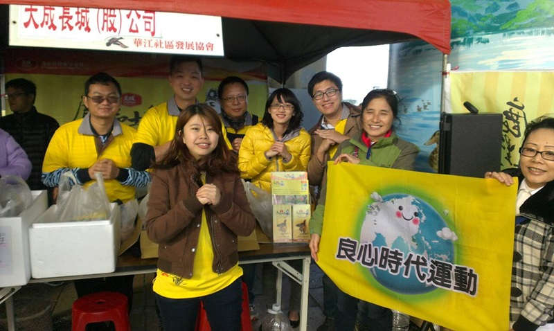 12/6台北市一年一度萬華華江雁鴨季活動擺攤的大成長城(股)公司經理-謝宗達先生帶領在場員工共同響應良心時代運動