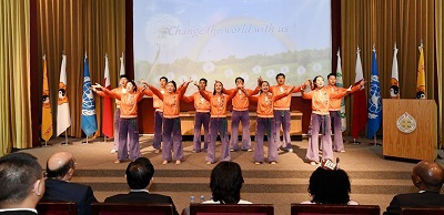 | 親訪團於巴林大學「2018愛與和平國際青年論壇」中,展演「We Can Change The World」,進行深度的雙向文化交流。 |