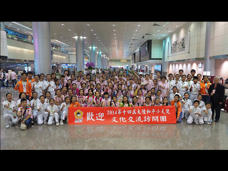 太極門神氣家族的青少年到桃園機場接機,與來自廈門的和平小天使相見歡。