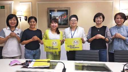 | 護理師護士公會全國聯合會高靖秋理事長 (右三),響應國際良心日宣言連署,呼籲大家懷抱敬天的心,以愛與關懷,彼此尊敬和平相處。 |