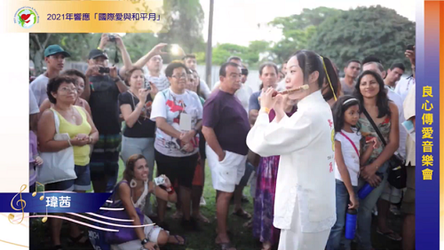 音樂會第一階段播放《世界之愛》這首歌曲,主持人姵妏表示,這首歌曲是由太極門掌門人洪道子博士作詞作曲,因有感於1999年921大地震,大自然反撲的力量驚人,而誕生了世界之愛和平宣言以及《世界之愛》這首歌曲,旨在呼籲世人以愛善待地球萬物生靈。這首歌持續在地球上傳唱,不只把台灣與全球連結,也串聯起人類重要的歷史時刻。
