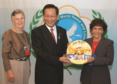 | 2004 年洪道子博士將彙整兩百萬人連署書的光碟,請第 57 屆聯合國DPI/NGO大會主席柯比女士、執行委員會主席李薇女士,遞交給聯合國秘書長安南。 |