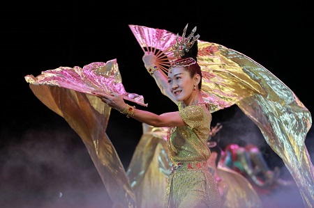 由太極門女弟子詮釋的火鳳凰舞蹈,象徵傳遞人間幸福的使者,在現今紛亂不安的世局中,帶來一股安定的力量;結合舞蹈與武術的俠女劍舞、LED現代俠客等武學藝術化,呈現東方武學中「止戈揚善」的最高武術精神。