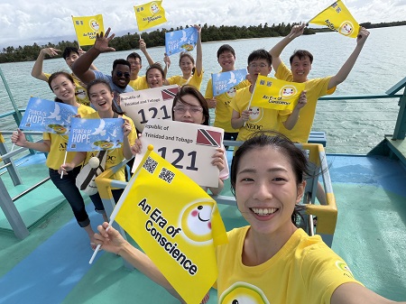 | 良心天使黃新蓉(後排右四)跨越國界,傳愛加勒比海。 |