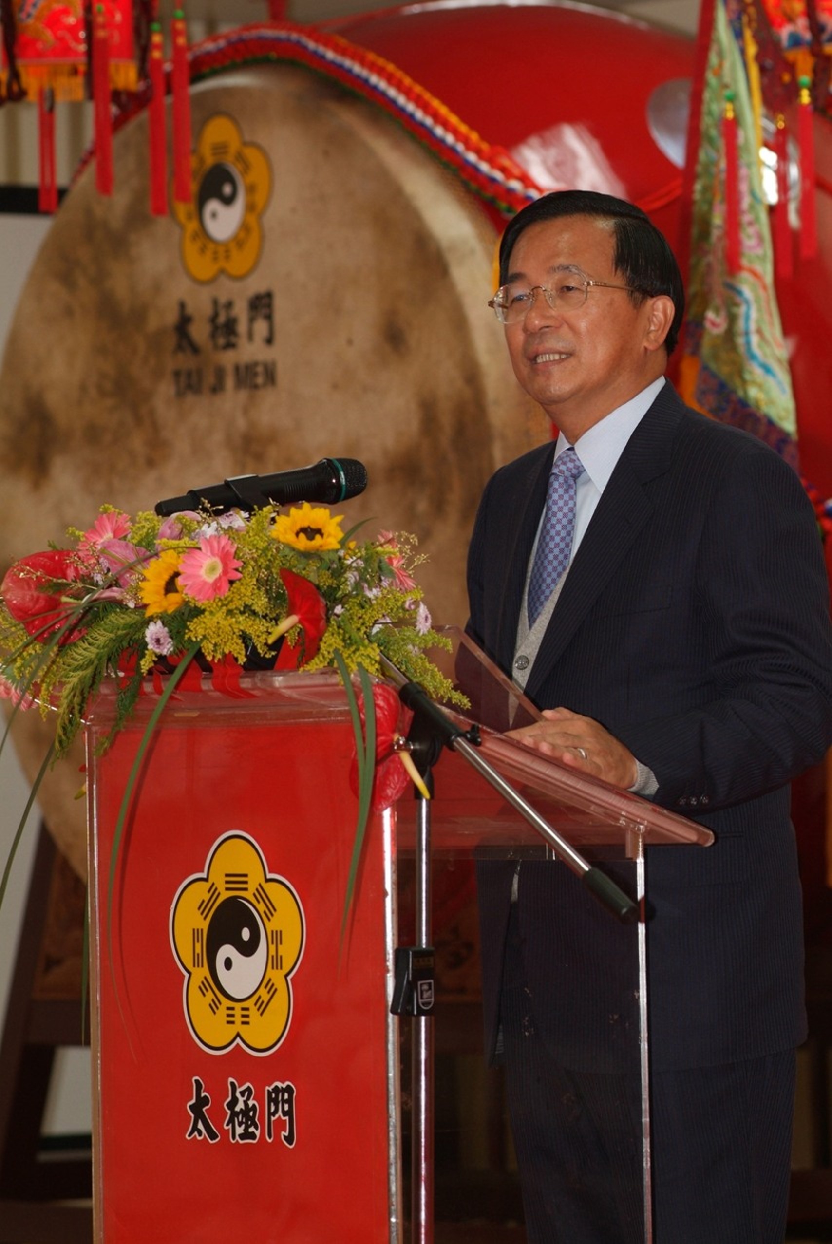 前副總統吳敦義:「看到太極門氣功的表演,隊伍陣容整齊,表演的手腳非常俐落,音樂都非常好,真是非常精美的演出。」