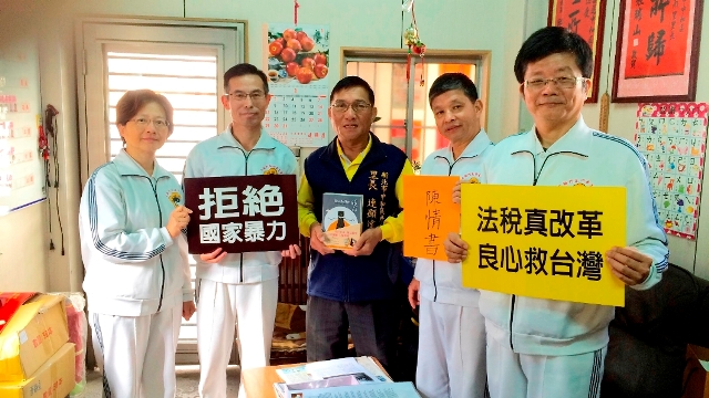 太極門弟子代表於1月17日拜會中國國民黨主席洪秀柱及北市大安區仁愛里里長鄭秀郎、新北市中和區外南里里長連顯達,致贈新年賀卡,感謝他們平日為民喉舌、伸張正義的精神,同時贈送「明白」、「真相」、「始末」三本法稅人權套書,太極門弟子並遞交陳情書及邀約連署「良心時代運動宣言」、「世界公民宣言」及「賦稅人權宣言」。當天適逢中國國民黨主席洪秀柱訪美,由執行祕書邱志誠代表接受轉交。