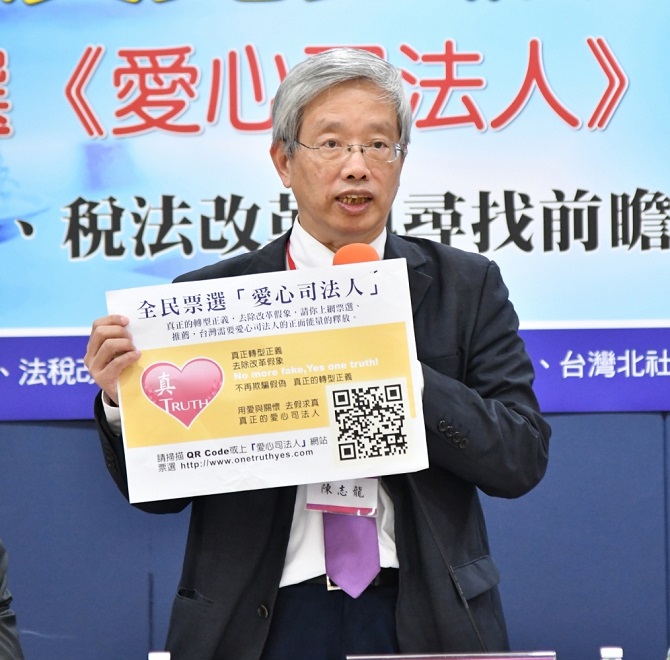 台灣財經刑法研究學會、法稅改革聯盟、法律扶助基金會台北分會、台灣北社等單位3月5 日在台大校友會館舉辦「平反冤錯假案,全民票選《愛心司法人》記者會與座談會」,會中學者專家及法官呼籲全民票選《愛心司法人》鼓勵司法人良性競爭,勇於百分百判決,平反冤錯假案!
