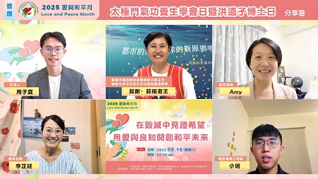 聯合國訂定每年9月21日為「國際和平日」,2025年主題為「即刻行動,建設和平世界」,強調在動盪時代,每個人都必須採取實際行動,以促進和平。和美基金會、太極門文教基金會及良心時代運動網站(ANEOC)主辦,聯合國NGO世界公民總會及太極門氣功養生學會合辦「用愛,和平與良心 打造美好家園」線上分享會,呼籲每個人都可以為和平做出貢獻,一個微笑、一句善意,以理解與尊重串起彼此,從「我」開始,從「現在」開始,讓世界因你我而更溫暖。此次分享會邀請了四位來賓分享其故事與經驗。